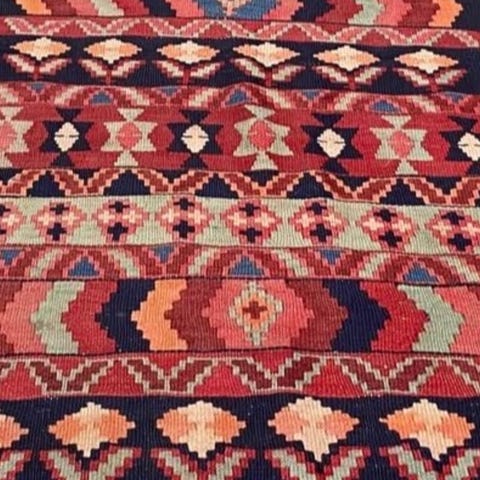 Stort og smukt håndvævet / håndknyttet kelim tæppe i uld. Perfekt til stuen eller under spisebordet. Har også andre kelim tæpper og kelim puder til salg.