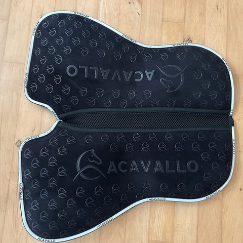 Acavallo Gel Pad underlag med lammeskind. Underlaget er sort med lammeskindskanter for ekstra komfort. Designet til at give støtte og trykaflastning under sadlen.