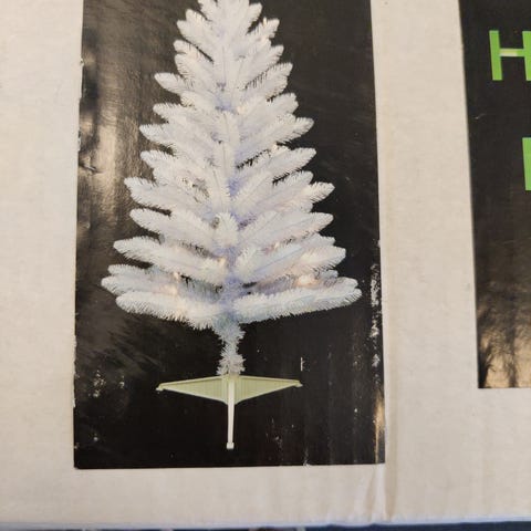 Juletræ 1m i højde. Med mange julekugler, stjerne i toppen og 2 forskellige slags julelys (hvid og farverig).