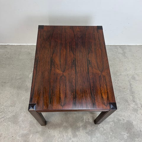Kvadratisk skammel stel i massiv palisander, med geometrisk broderet sæde