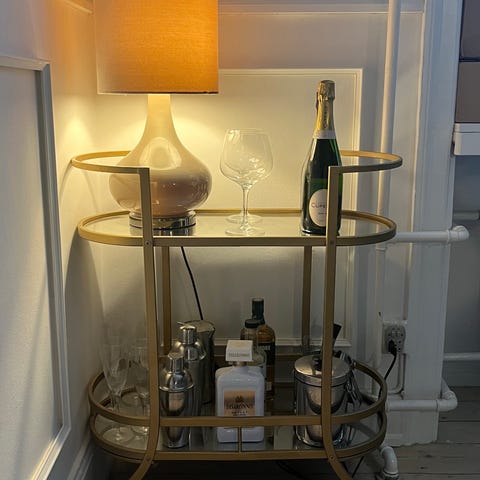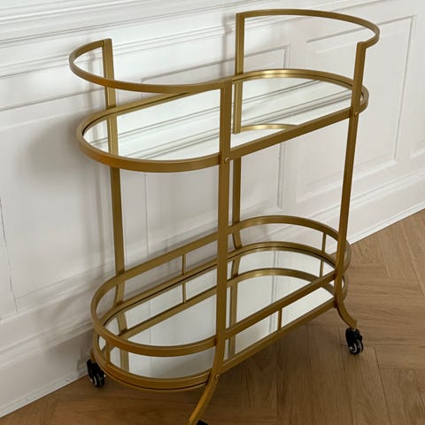 Superfin og fed, guldfarvet barvogn fra Margit Brandt sælges (uden indholdet)!