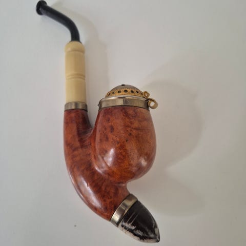 Pibehovedet er lavet af merskum, et porøst hvidligt mineral, der er populært til kvalitetspiber.