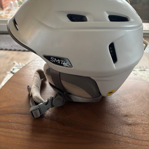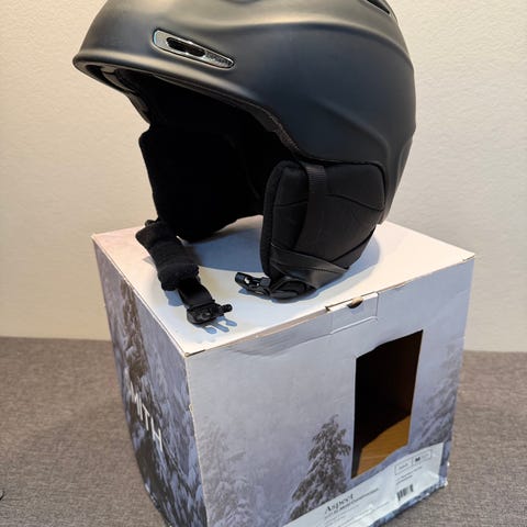 Smith skihjelm i sort farve. Hjelmen har ventilation og justerbar strop under hagen.