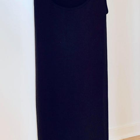 Sort ærmeløs top med pailletter på brystet. Toppen har en rund hals.