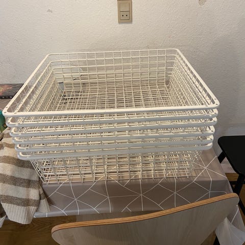 9 trådkurve i metal med tilhørende skinner.