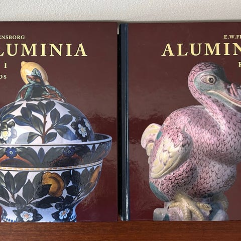 “ALUMINIA bind 2 - Fabrikkens historie og produktion af Stengods, Porcelæn og Fajance, 1863 - 1969” af professor E.W. Flensborg.