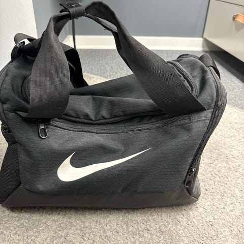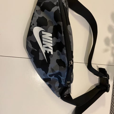Nike taske i stof til unisex. Tasken har en sort farve med Nike-logo på fronten. Den har justerbar skulderrem og flere rum med lynlås til opbevaring af personlige ejendele.