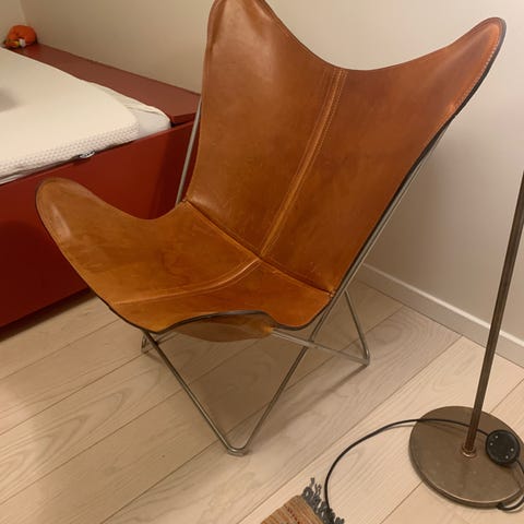 Lækker og stilfuld design lænestol i kernelæder i flot stand.