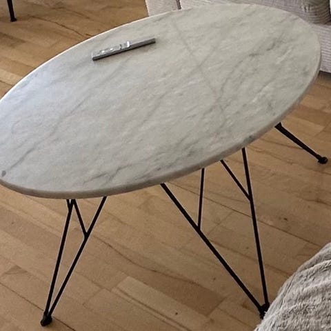 Sælger dette elegante Neptun sofabord fra Ilva med rund bordplade i ægte marmor og sort metalstel. Et stilrent og tidløst sofabord, som passer perfekt ind i både moderne og klassiske hjem. Fra røg- og dyrefrit hjem.