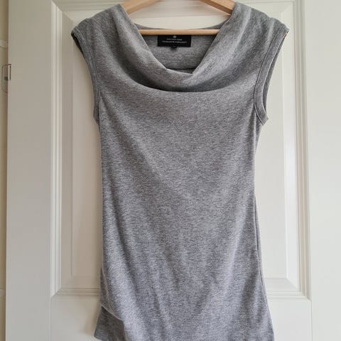 Bluse fra Warp i grå m. lange ærmer og albuelapper i sort.