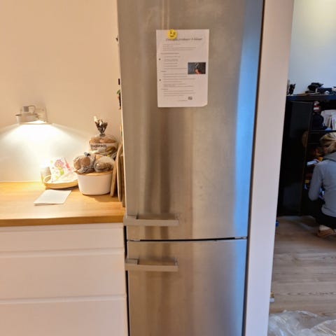 Lækkert køle-fryse-skab, sælges på grund af flytning, skal hentes mellem søndag 25/1 og senest onsdag d 28/1 kl 12.00. Køleskabet er 4 1/2 år gammelt, fejler ingenting. 201 x 60 cm. Skal afhentes på Frederiksberg med god chance for parkering tæt på opgangen. Skal bæres ned fra 2. sal.
