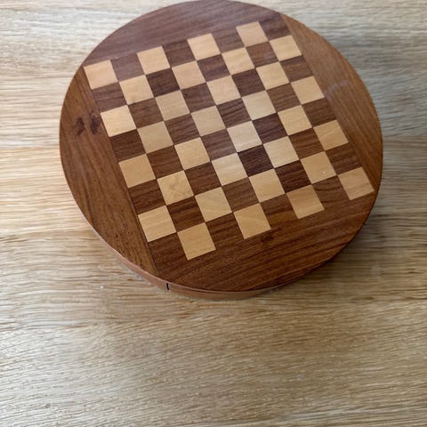 Skakspil bestående af et skalbræt med dekorativ kant og udsmykkede skakbrikker i håndskåret alabast. Skakbrikkerne har detaljerede figurer med to forskellige farver, der adskiller de to sæt. Spillet indeholder både konge, dronning, tårn, løber, springer og bønder i begge farver. Skakbrættet er firkantet med en klassisk 8x8 feltrude-opdeling.
