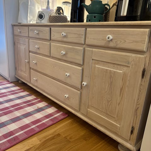 Flot retro købmandsdisk fra omkring 1980. Lavet i fyrretræ. Fejler intet.