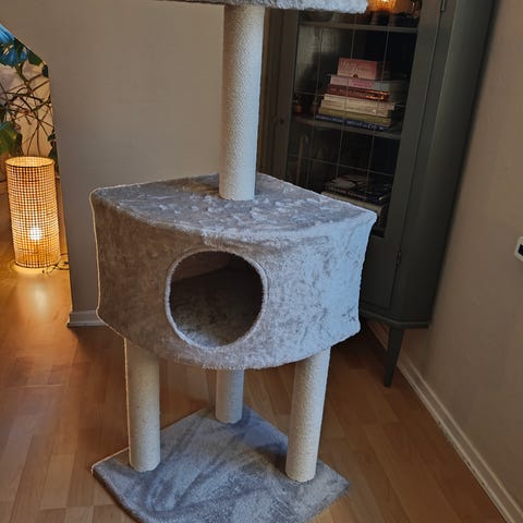 Modern Living kradsetræ i rigtig god stand. Det er et solidt og dekorativt kradsetræ med tyk sisalstamme og stor bundplade, som passer både til almindelige og større katte (fx Maine Coon).
