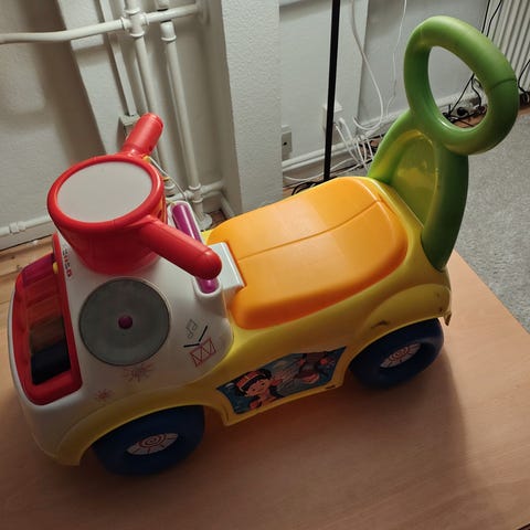 Little Tikes legebil med integreret indkøbskurv i farverne pink/hvid/lilla