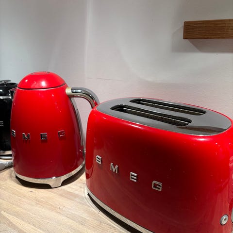 Smeg elkedel i rustfrit stål. Designet til opvarmning af vand med låg, håndtag og ledning til tilslutning. Funktionel til daglig brug i køkkenet.