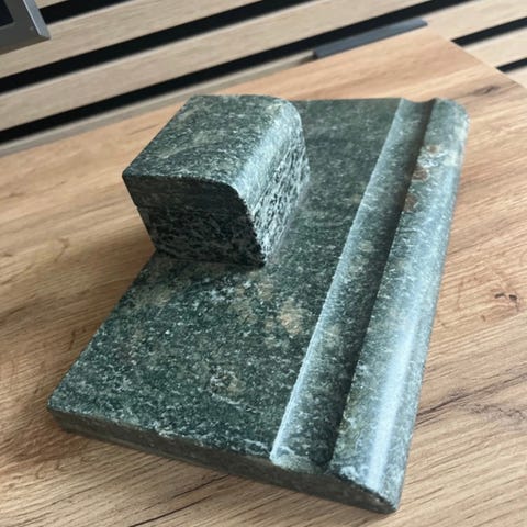 Indvendig er den rillet rundt i kanten og der et stempel med en stjerne (8 takker) og 623.