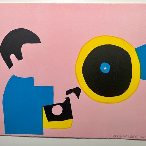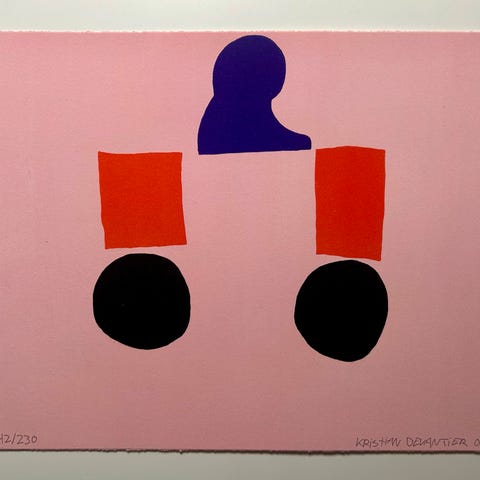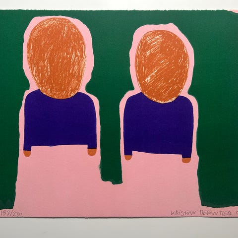 Kristian Devantier signeret litografi fra 2007 med motiv af en sneemand. Trykket er nummereret 109/230 og har en pink baggrund med snefnug. Farverne inkluderer hvid, sort, brun og pink. Signeret og nummereret af kunsteren.