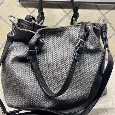 Skuldertaske, Flettet strå taske, Flot taske i gyldne farver. Der er en lomme i tasken. Tasken lukkes bl.a. med lynlås . Som ny. Bredde øverst..det bredeste sted: 33 cm. Højde: 25 cm