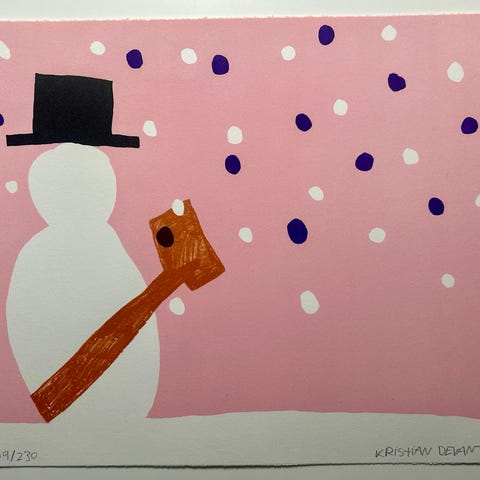 Kristian Devantier litografi nummer 142 ud af 230. Print med abstrakt motiv i farverne pink, blå, rød og sort.
