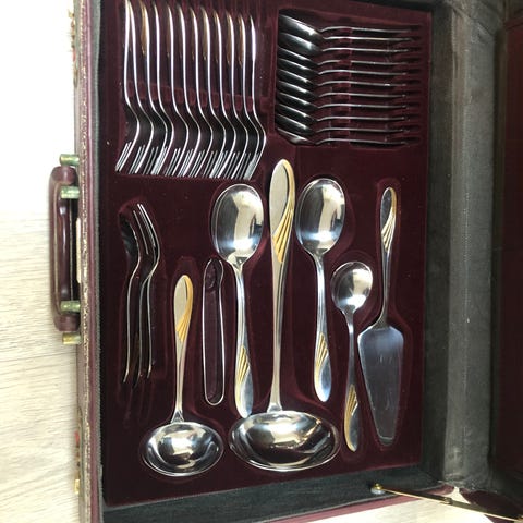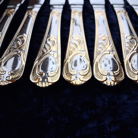 Super smukt guldbelagt bestiksæt til 12 personer. Certifikat medfølger.