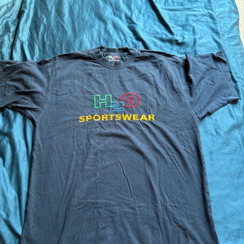 Armygrøn H2O trøje str. Large. H2O Sportswear. Har svag refleks tekst på brystet: "H2O Active Original Sport". Den er brugt men er i pæn stand. Ingen huller. Bomuld.
