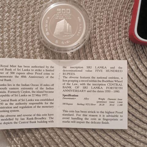 Dette er en thailandsk 50 Baht mønt fra 1974, præget i sølv (0.500) med en vægt på 25,31 gram. Mønten er en ikke-cirkulerende samlermønt (mindemønt), der viser portrættet af kongen og et næsehorn. Den er kendt i samlerkredse for sin sølvværdi og flotte prægekvalitet, ofte med Numista-reference.