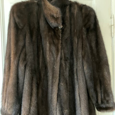 Fuldstændig intakt foer med inderlomme. Pelsen har lange ærmer, pelshægtelukning, sidelommer og et klædeligt slankt snit.