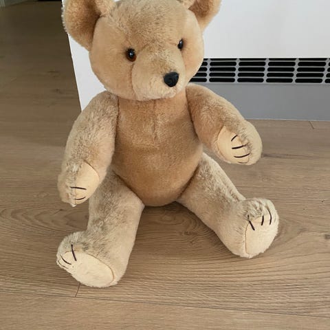 Vintage Hugoline bamse, i meget pæn stand. Måler ca. 20 cm i højden. Sandsynligvis fra 1990'erne. Med metaltråd i ørene så de kan bøje.