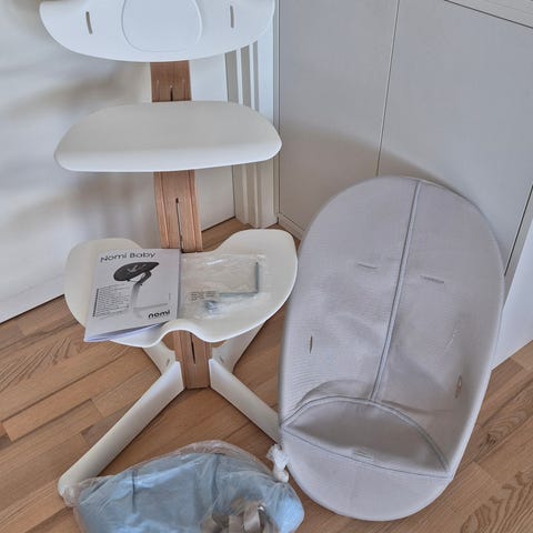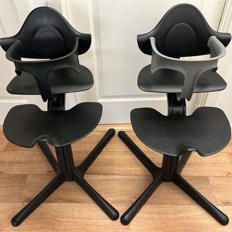 To nomi højstole i original sort farve. De er begge velholdte med bøjle og newborn 1200 kr.