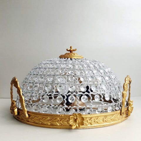 Stor krystal loftlampe fra Italamps Opera-linje med forgyldt metalk base, 3x E14-fatninger, ca. 1990–2000, mål 36 x 36 x 17 cm, vægt 3,8 kg, i fremragende stand og i funktion. Klik på den blå "gå til varen" knap, for at købe eller byde på denne vare. Den samlede pris vil blive vist inden du afgiver dit bud.