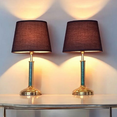 Bemærk, at deres beige lampeskærme er nye og giver et moderne præg.