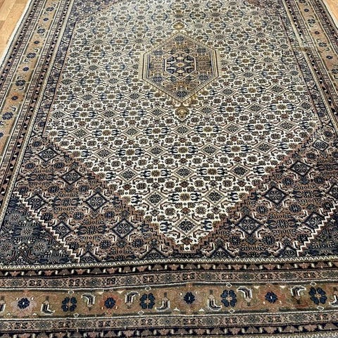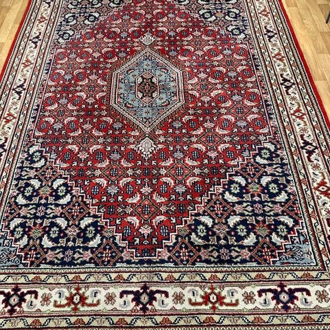 Bidjar håndknyttet tæppe fra Indien i flerfarvet uld på bomuld, 207 × 100 cm, i god stand. Klik på den blå "gå til varen" knap, for at købe eller byde på denne vare. Den samlede pris vil blive vist inden du afgiver dit bud.