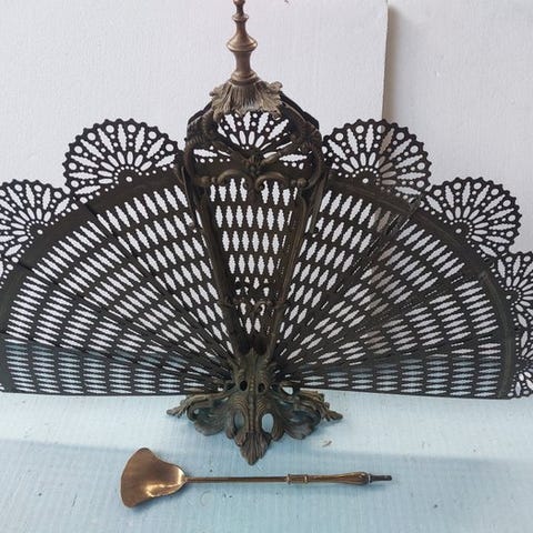 Skærm til pejsen – beskyttelse og pynt foran Deres pejs, beskyttelse for små børn og dyr, i bronze fra det 19. århundrede i Empire-stil, foldbar i 3 dele. Dimensioner: længde 82 cm, sammenfoldet i 3 dele til 27 cm, højde 47 cm og 3 kg + forsendelse i god stand. Sporbar forsendelse til hele verden.