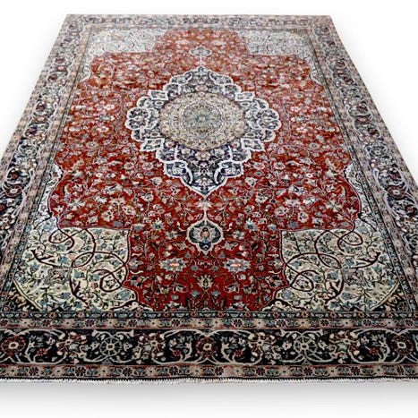 Dette eksklusive håndvævede orientalske tæppe i det traditionsrige Kayseri-design stammer fra Tyrkiet.