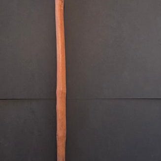 Geelvinkbaai/Cenderawasi. Instrument brugt ved fangst af flagermus. Udstyret med de kendte Geelvinkbaai-motiver. Muligvis fra øen Biak. Samlet i 1950'erne eller 1960'erne af Jac Hoogerbrugge. Se tegningen af Hoogerbrugge.