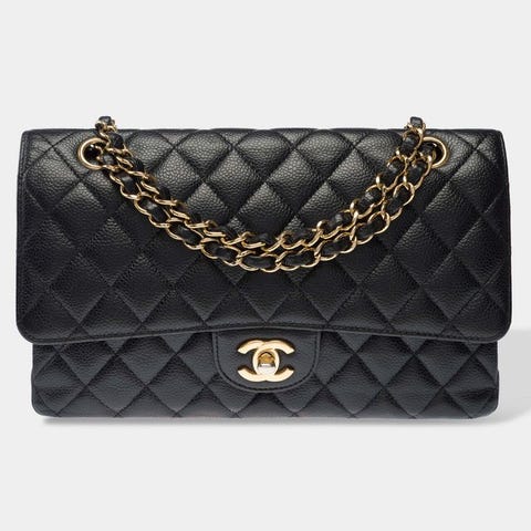 Borsa CHANEL, model Timeless, lille størrelse lavet i sort Caviar-læder. Metaldele i sølv. Udstyret med en justerbar læderkæde til skulderbrug. Indvendigt foret med bordeauxlæder, små lommer og en flad påsyet lomme. Ikonisk frontlukning med drejehåndtag og CC-logo. En lomme på bagsiden. Der er trykmærker på den indvendige klap til lukningen. Mindre tegn på brug generelt, mikro ridser i hjørnerne. Mikro ridser på metaldele.