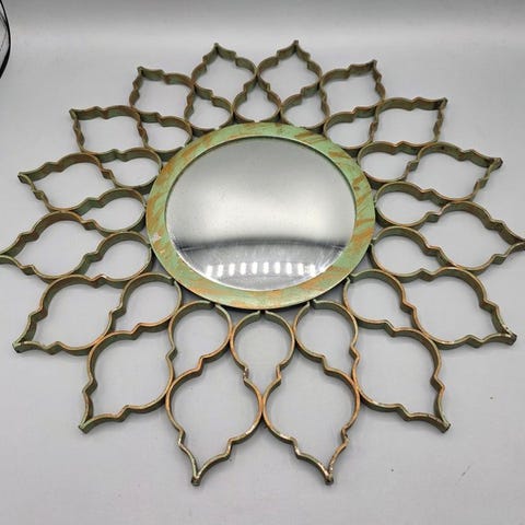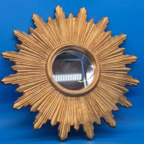 Stil: Dekorativt spejl med et strålende, flerpunktsdesign, ofte omtalt som 'okseøje'.
