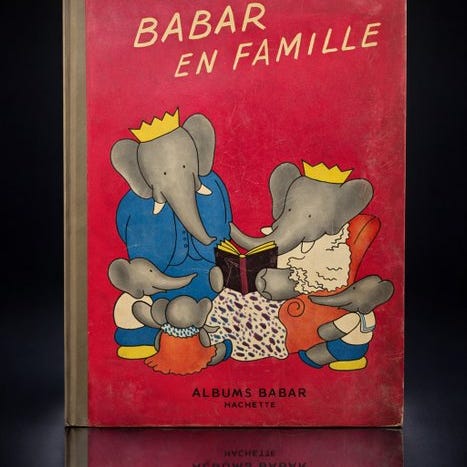 Illustreret album Kongen Babar, tekst og illustrationer af Jean de Brunhoff, udgivet af Librairie Hachette.