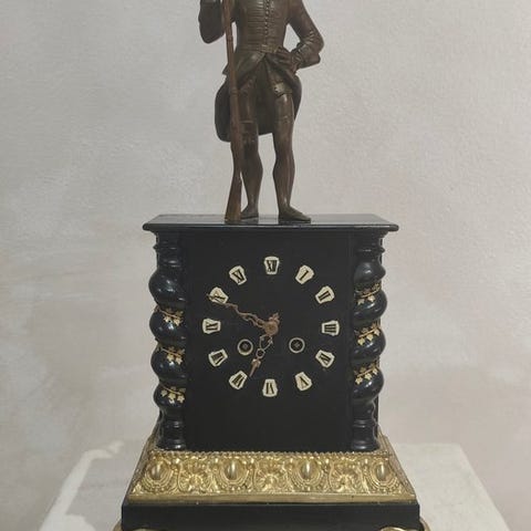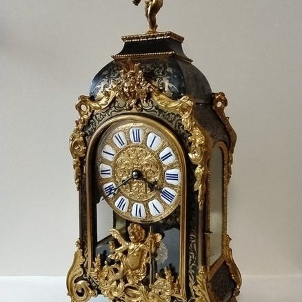 Fransk antik-regulator bordsur med glas på fire sider.