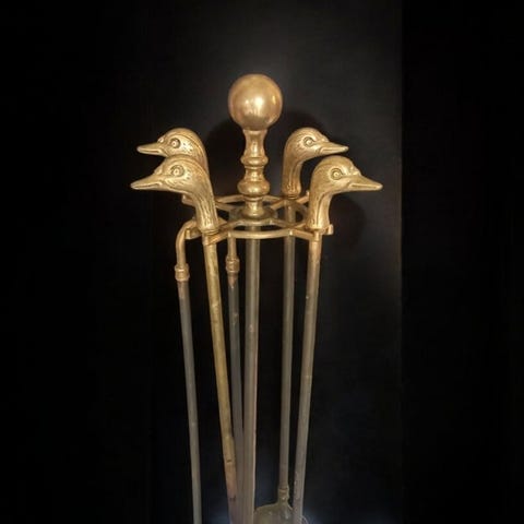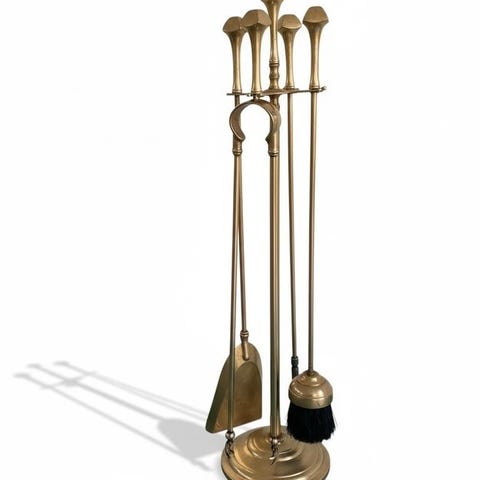 Antikt pejsesæt, sjælden form i massivt forgyldt bronze, nyttigt til din pejs og grill med 5 dele. Forgyldt bronze fra det 19. århundrede. Dimensioner: 67 cm høj, 14 cm støtte i fremragende stand. Sendt fra Frankrig, hurtigt og godt emballeret. Held og lykke med budene!