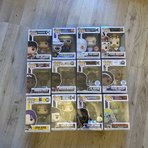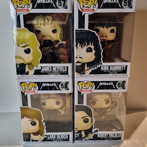 Funko Pops af Kurt Cobain, Nirvanas sanger, som er i meget god stand. Disse pops er meget eftertragtede og sjældne. Leveres i et beskyttelsesetui. Se grundigt på billederne for detaljer.