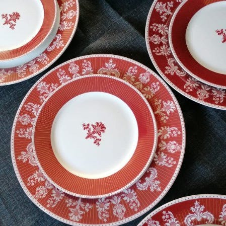 Lot af fem Buon ricordo keramiske tallerkener fra Solimene, Vietri sul Mare, Italien, fra 1980–1990, i fremragende stand, diametererne 19,5–23 cm Klik på den blå "gå til varen" knap, for at købe eller byde på denne vare. Den samlede pris vil blive vist inden du afgiver dit bud.