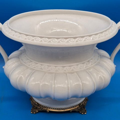 Stor keramisk plantekasse på fod, der også kan bruges som vase, i meget god stand.