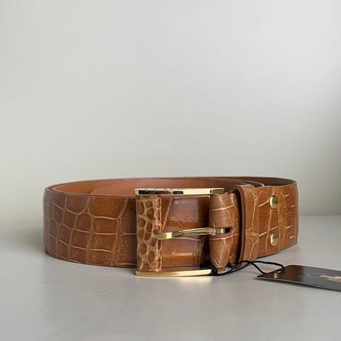 ZILLI 126 Croco bælte af mørkebrunt krokodillelæder, lavet i Frankrig, ny eller som ny, med eller uden original emballage, størrelse 120 cm, længde 139 cm inklusive spænde, bredde 4 cm, med original etiket og tøjspose. Klik på den blå "gå til varen" knap, for at købe eller byde på denne vare. Den samlede pris vil blive vist inden du afgiver dit bud.