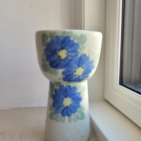 Dekorativt porcelænsvas, håndmalet med røde og blå blomster i Imari-stil, 40 cm høj og 15 cm bred, 3 kg, produceret i Italien, dateret 1970–1980, vintage-stil. Klik på den blå "gå til varen" knap, for at købe eller byde på denne vare. Den samlede pris vil blive vist inden du afgiver dit bud.