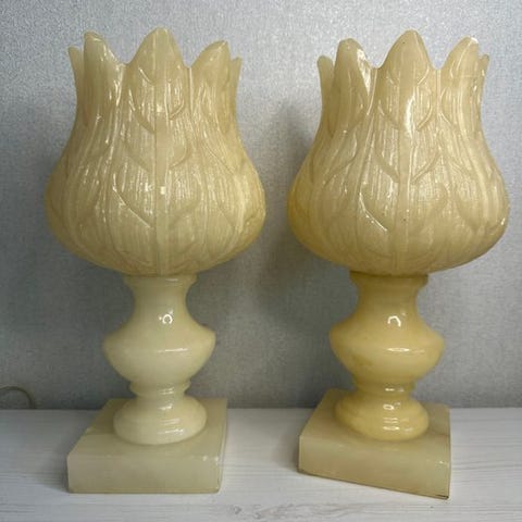 Bordlampe - Onyks, Tekstil - Vintage bordlampe i onyxsten.