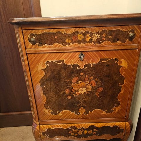 Italiensk lavet shabby chic-skænk i træ, fra 1990–2000, med to nedre døre, en øverste skuffe, messinghåndtag og -døre, top i naturtræ, låsbar, mål: 85 cm høj, 82 cm bred, 40 cm dyb. Klik på den blå "gå til varen" knap, for at købe eller byde på denne vare. Den samlede pris vil blive vist inden du afgiver dit bud.