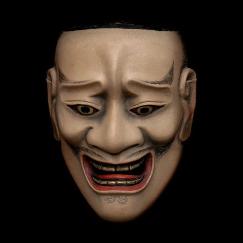 Noh maske - Træ, Stor træskulpturel Nohmaske af Tengu 天狗 - Stor Tengu天狗