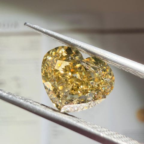 | Farvegrad | NATURAL FANCY YELLOW | Dette er en fancy farvet diamant, hvilket betyder, at dens farve er naturligt fremtrædende og eftertragtet, og den falder uden for den typiske D-Z farveløse skala.